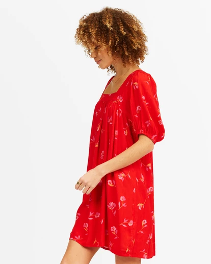 Hello, lady in red! We love a baby doll dress for any occasion. Add puff sleeves and vibrant color? Swooning. The Bay Side Dress is crafted with crinkle fabric so it’s great for travel, holidays, or a local girls’ night out. The fit is A-line with a square neckline and metal bar branding at the back.