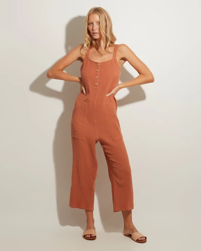 Drenched by the sun and kissed by the sea, you’re road trip ready in the Daydreamer Jumpsuit. Made for those with a far-away spirit, this women’s jumpsuit offers effortless style for wherever you roam. The textured cotton gauze fabric is cut in a relaxed fit with a square neck and adjustable straps. Perfect over your bikini or layered with a knit for chilly days.