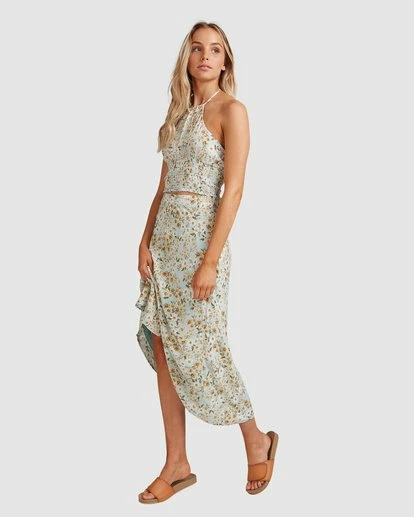 Perfectly paired with a BB crop top or bikini style the Del Mar Midi Skirt is a wardrobe essential. Featuring a stunning bias cut style, fixed waistband, hidden zipper entry and a below knee length for the perfect swish.