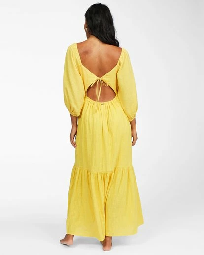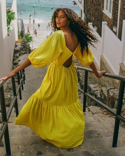 A timeless romantic, the Dream Chaser Dress drifts between playtime and date night with ease in dreamy, feminine lines. The women’s maxi dress finds a flattering silhouette with an easy skirt and cut out back bodice with self tie. 3/4 puff sleeves are added to finish off the look.