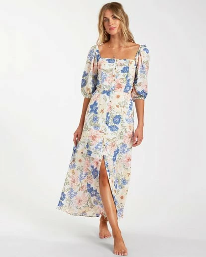 A dress for the wildflower, the Billabong Dreamer brings plenty of love and petals everywhere it goes. A romantic maxi dress with a custom floral print, the Dreamer combines tradition and whimsy with a button-down center front, square neckline and half-length puff sleeves.