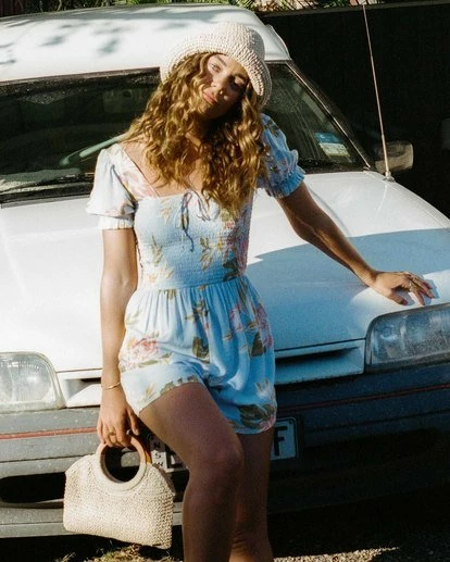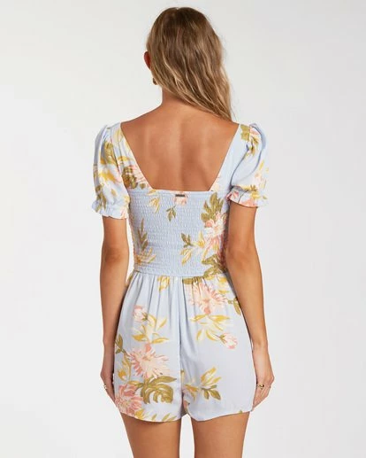 The Billabong Flirty Day celebrates love, sunshine and fresh-cut blooms. A feminine jumpsuit with an allover floral print, the women’s romper finds a fitted bodice with comfortable smocking all-around, adding subtle structure with a square neckline. A spaghetti tie at the neckline and ruffle trims at the short puff sleeves add an extra dose of romance to the mix.