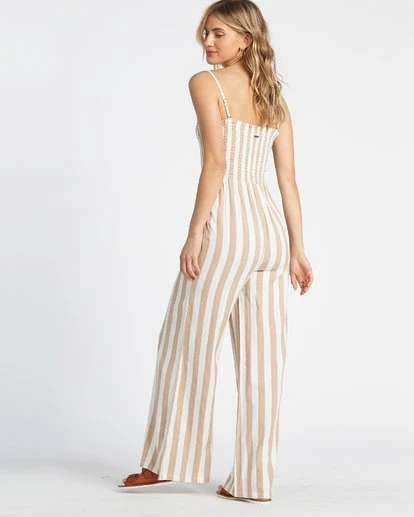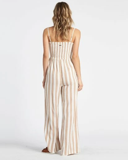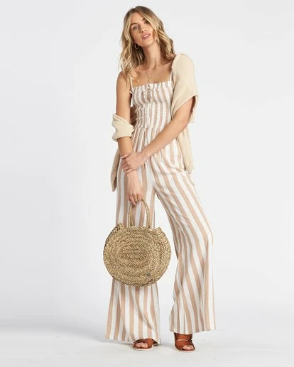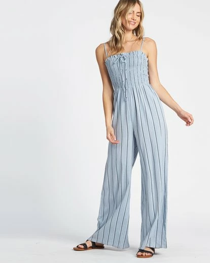 Give your look a vertical lift with the Forever Fields Jumpsuit. Standing out with a bold striped print, this women’s jumpsuit features a smocked bodice with shoulder ties for perfect summertime style. This one-and-done staple is made with premium slub fabric that gives it a dreamy soft texture.
