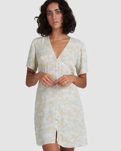 There is music in the air with the Melody Dress. Delivering a feeling of femininity combined with attention to detail, the woven short dress is perfect for lounging or dancing the day away. A self waist tie and V neckline adds a sweet note to this summer go-to.