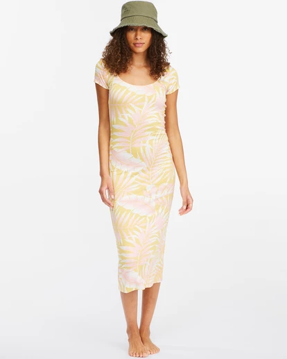 These lines made to be lived in. Serving up soft and stretchy knit stripes, this fitted midi dress is easy to layer, adding a scoop neck and short cap sleeves.