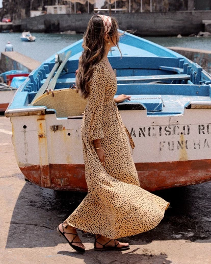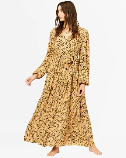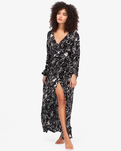 Go ahead and get a little risky. You look so good in the Nine Lives Dress, you can get away with anything. This women’s maxi dress is made from Crinkle fabric with an all-over feline print. The wrap design makes it fully adjustable to your body shape, and long blouson sleeves add stunning style.