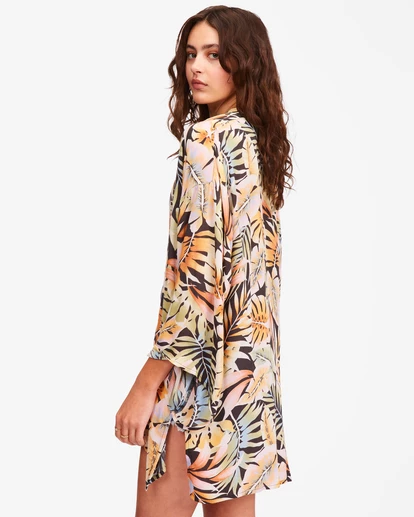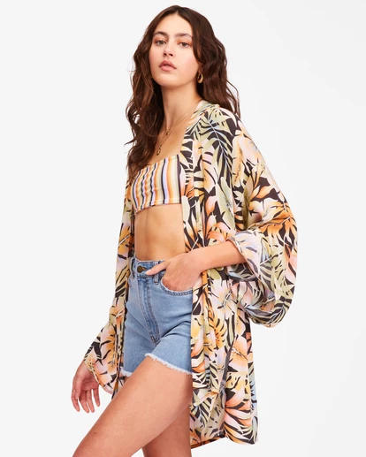 The Parisian Nights Kimono Top is the perfect statement piece to layer over your chic basics. It’s relaxed shape and open front style add easy movement and flow while a stand out print delivers a warm, mellow vibe of the tropics. With lightweight crinkle fabric you never have to worry about wrinkles, so this beauty is great piece to pack for your jet-setting adventures both near or far.