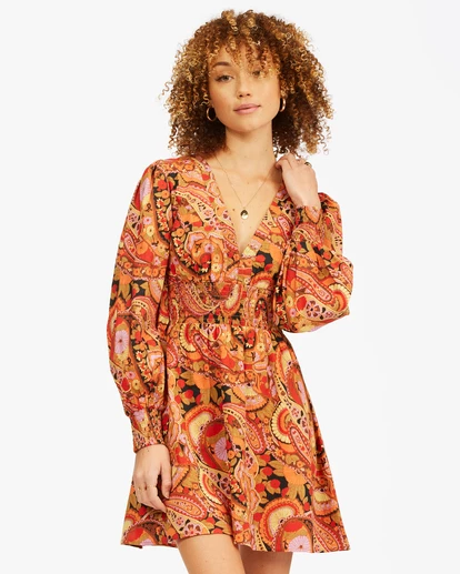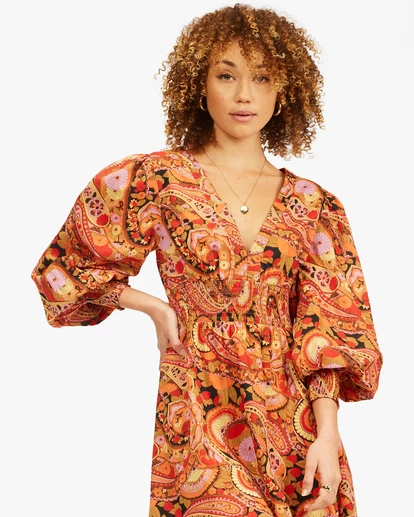 The retro vibes are strong with this one. Taking a modern twist on 70s spirit, the Perfect Paisley Dress offers Fit & Flare styling with a smocked waist that creates a shapely silhouette. A fun and flirty essential for any occasion, this beauty is made of cotton slub fabric with a lightweight subtle texture. A deep V-neck and blouson sleeves add stunning style.