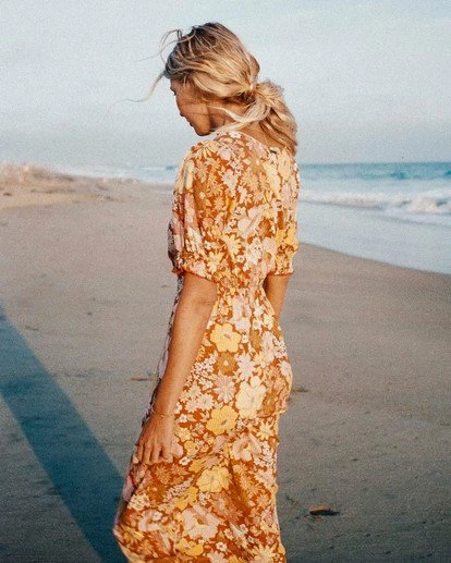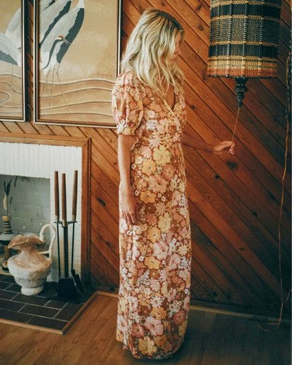 Who doesn’t love nostalgia you can twirl in? Chest to toe in retro blooms, the Salty Blonde Hello There Dress is sunsoaked in hippie vibes. Fitted through the top with an easy skirt, this flowy dream plays up its girly side with short puff sleeves, a deep V-neck, and pintucks on the front bodice to create a little added shape. Also, we made this maxi with Eco-Conscious Cotton stripe. How groovy is that?