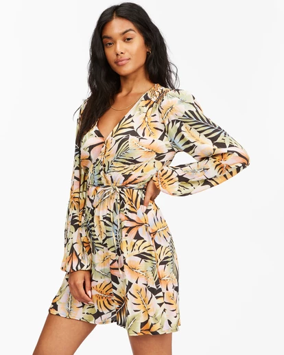 Ahh, Spring! The water is warming, flowers are blooming— but our favorite part? It’s pretty dress season! And the Spring Romance Dress shows up for it in style. This women’s mini dress from our Under The Palms Collection features a playful print on premium crinkle fabric that gives it a subtle texture and a silky-soft feel. Plus, it’s loaded with dreamy details including a V-neck, flowy blouson sleeves, and a smocked panel at the front. And as for the fit? It’s a true wrap dress so you can count on this little mini to not only feel good, but look good. Every time.