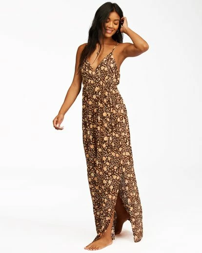 Ease into a sunny state of mind with relaxed lines and a pretty print. A floral maxi dress, the Sunbeams updates a slip dress silhouette with a relaxed fit and crinkle fabric. Details include thin straps, a v-neckline and side slit.