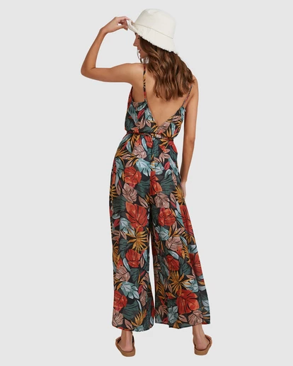 Made to wander freely, find paradise wherever you are in Sundaze Jumpsuit. The perfect blend of fit and flow, this women’s jumpsuit keeps a laid-back vibe with a regular fit through the top that opens up into a wide, flowy leg. Tropical flora takes the spotlight with this Eco-Conscious jumpsuit featuring a V-neckline at the front and back, adjustable shoulder straps, and side pockets.