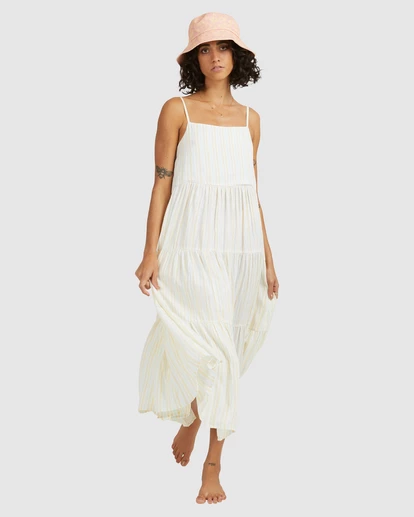 Striped and stunning, the Tropic Haze Maxi Dress is the perfect sidekick for sun-soaked days. Offering a square neckline and a regular fit through the top, this laid-back beauty flows with soft gathered tiers throughout the skirt. Made with soft crinkle fabric that’s perfect for travel and exotic wanderings, this women’s maxi dress features a keyhole at the back and adjustable straps.
