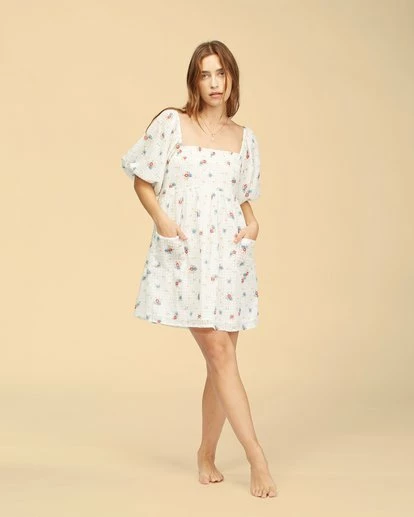 Nothing says summertime sweetness like a puff sleeve on a mini dress, and the Forget Me Not Dress floats high about the rest. A timeless baby doll ready to claim her place in the sun, this floral dream has a fitted bodice paired with an easy skirt and patch front pockets. An added bonus? It’s made with Eco-Conscious Cotton eyelet. Our Eco-Conscious cotton is farmed and produced in a way that aims to reduce its environmental impact and improve working conditions.
